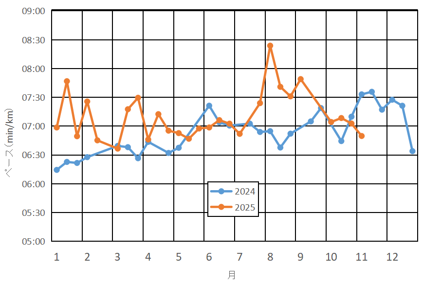 ただ、昨年同時期と比べると1回の距離が、アベレージで昨年4キロ強に対して今年6キロ強と伸びています。平均ペースも上がってきていますが、早く走りたいわけではないので「fun run」 楽しくです。
