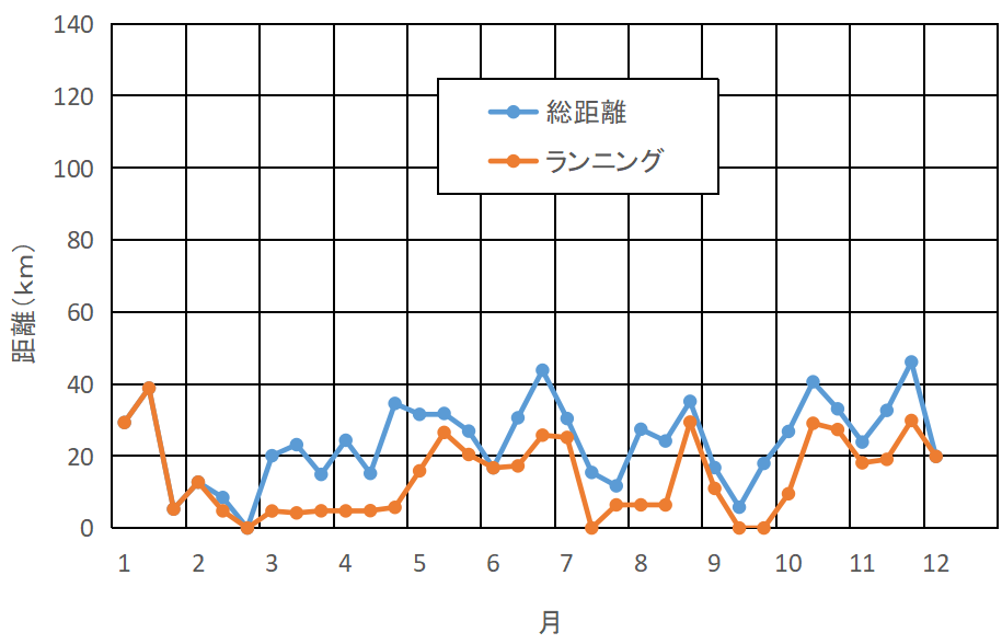 | トレーニング | 3日 | 19.86km | (前回比 26.24km↓) | 日平均 6.62km |