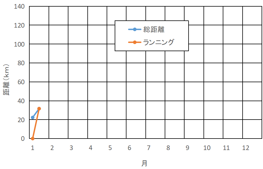 | トレーニング | 2日 | 31.65km | (前回比 9.37km↑) | 日平均 15.83km |