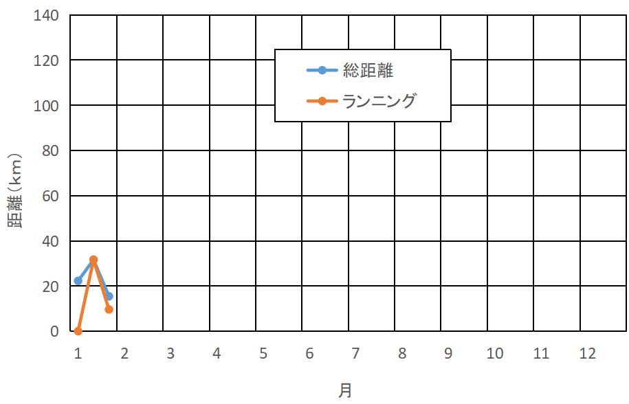 | トレーニング | 3日 | 15.46km | (前回比 16.19km↓) | 日平均 5.15km |