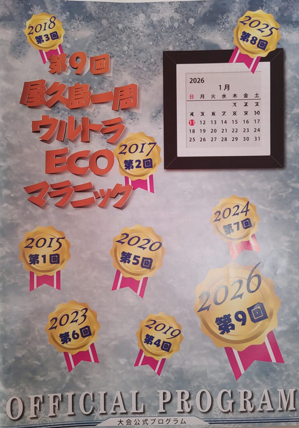 屋久島一周ウルトラECOマラニックは、早さを競うのではなく、世界自然遺産屋久島の美しい風景や環境の大切さを走りながら歩きながら肌で感じてもらおうと2015年から開催されているようです。途中、2016年とコロナ禍の2021,2022年に開催されませんでしたが、今回(2026年)で第9回を迎えました。