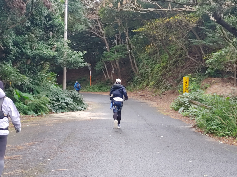途中、すでにスタートしている55km、100kmの選手がたくさん走っていて、心の中で応援しつつ追い抜いてゆきました。